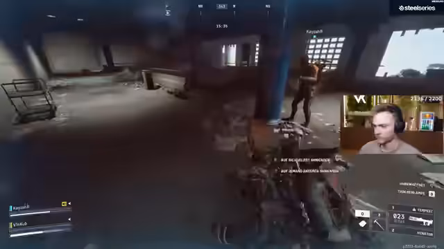 05:32:32Der Streamer und sein Team sind in einer extrem hektischen Runde verwickelt. Es kommt zu mehreren engen Kämpfen mit mehreren gegnerischen Teams, wobei taktische Elemente wie Schilder, Rauchgranaten und Schockminen eine große Rolle spielen. Sie kämpfen sich durch ein Labyrinth aus Häusern und Treppen, während ständig neue Gegner auftauchen und sie unter Druck setzen.