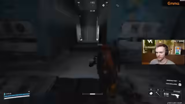 03:41:58In der Endphase eines Raids kämpft der Streamer um die Sicherung des Extraktionspunktes (Exfil). Er beobachtet ein gegnerisches Team, das bereits kampfbereit ist, und plant eine defensive Taktik. Er errichtet Barrikaden, platziert Abzugminen und Triggergranaten, um den Weg abzusichern. Gleichzeitig ist er sich unsicher, ob alle Gegner neutralisiert wurden und ob weitere Kämpfe bevorstehen, da er unklare Geräusche und Bewegungen wahrnimmt.