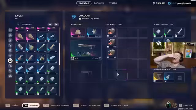 06:20:35Der Streamer kämpft in heftigen Feuergefechten und eliminiert mehrere Gegner im Bereich eines Fightnet. Er stellt fest, dass sein Inventar durch die Beutelage völlig überfüllt ist, was sein Gameplay stark einschränkt. Er ist gezwungen, Entscheidungen über Waffen zu treffen, die er mitnimmt, und erkennt den Wert wichtiger Gegenstände wie einer Ferro mit kinetischem Converter. Das ständige Looten und die begrenzte Lagerkapazität werden zu einem zentralen Problem und führen zu stressigen Situationen.