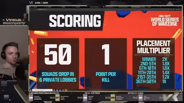 03:41:31Der Streamer stellt das Format der World Series of Warzone (WSOW) vor. Es wird erläutert, dass das Turnier im Lower Bracket Round 2 stattfindet, an dem die 25 schlechtesten Teams des Upper Bracket und die 25 besten Teams des Lower Bracket Round 1 teilnehmen. Die Top 25 Teams dieser Runde qualifizieren sich für das regionale EU-Finale. Deutsche wie internationale Teams wie Milcy, Brelo, Azen und Hamoudi werden als Teilnehmer erwähnt, und der Streamer betont, dass es trotz des Lower Brackets spannend wird. Er ist gespannt auf den Start der Runden und den offiziellen Cast von Call of Duty.