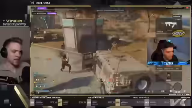 05:19:13Aufgrund der extrem schlechten Streamqualität des offiziellen WSOW-Feeds entscheidet sich der Streamer, zu der Ansicht des Gewinner-Teams von Runde zwei zu wechseln. Dort kann man die Aktionen deutlich besser verfolgen. Gleichzeitig wird eine neue Wette gestartet, in der der Chat tippen kann, ob das Team von Ersin in der Runde unter die Top 10 schafft.