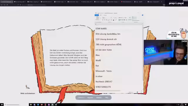06:52:28Die Community und der Streamer ringen weiterhin intensiv mit dem Rätsel. Es werden verschiedene Ansätze diskutiert, darunter die Übersetzung von Zahlen in Buchstaben und die Bedeutung von 'Flügeln'. Der Fokus liegt auf dem Buch 'Flügel für Menschen und Ideen' und dessen Verbindung zum Rätsel. Es wird spekuliert, ob Star Wars eine Rolle spielt, da von Trilogien die Rede ist. Der Streamer äußert mehrfach seine Frustration und Verwirrung über die Schwierigkeit des Rätsels und die unklaren Hinweise. Es wird sogar überlegt, die Red Bull Hotline anzurufen, um einen zusätzlichen Tipp zu erhalten. Verschiedene Theorien werden aufgestellt, verworfen und erneut aufgegriffen, während die Community fieberhaft nach der Lösung sucht. Der Streamer betont, dass es nicht um den Barcode oder die ISBN-Nummer des Buches geht. Es wird vermutet, dass die Lösung im Buch selbst zu finden ist, möglicherweise auf der Rückseite. Der Streamer kündigt an, auf einen neuen Tipp zu warten, da er sich völlig verloren fühlt und körperliche Beschwerden wie Kopfschmerzen bekommt.