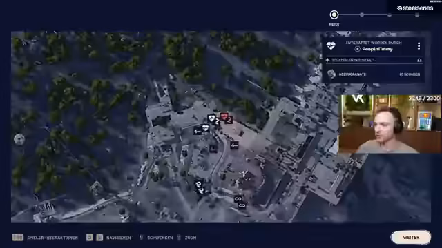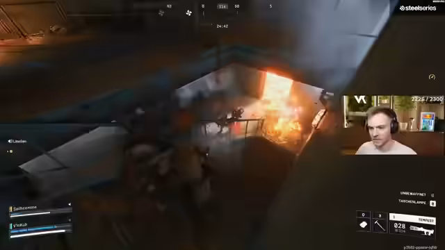 02:44:57Der Streamer befindet sich in einem intensiven Kampf in ARC Raiders, zunächst mit einem Teamkameraden namens Rennes. Sie planen, einen Gegner von hinten anzugreifen und erkunden verschiedene Positionen. Ein Gegner wird mit einem Stein von unten bekämpft, während der Streamer versucht, mit Smog-Waffen ein Team auszuschalten. Ein Gegner namens Oney wird gesmogt, doch der Streamer bemerkt, dass ein Teammate fehlt. Die Kämpfe finden in einem komplexen Gelände statt, mit Fokus auf das Ausschalten einzelner Gegner und das Durchdringen von feindlicher Deckung. Der Streamer agiert mit taktischem Wechsel der Waffen und sucht ständig nach besseren Positionen.