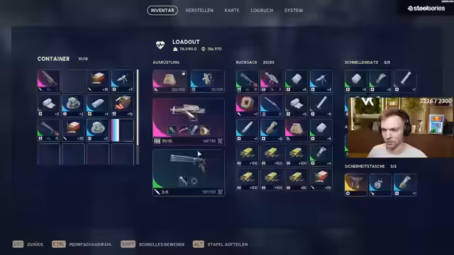 00:10:15Nachdem die technischen Vorbereitungen abgeschlossen sind, startet der Streamer mit seiner Community eine Runde im Spiel ARC Raiders auf der Karte Stellamontes. Das Ziel dieser Runde ist das Farmen von Akkus und anderen Ressourcen, die für den später geplanten PvP-Modus benötigt werden. Er erwähnt, dass er im vorherigen Stream viele Waffen verloren hat und daher Ressourcen craften muss. Die Runde verläuft nicht ganz glatt, da er auf Gegner wie einen Flammenwerfer-Arg und einen Shredder trifft, die ihn unter Druck setzen. Trotzdem gelingt es ihm, einige Akkus und andere nützliche Items zu looten.