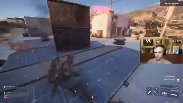 03:27:31Ein sehr intensiver Kampf entbrennt um eine Barrikade in einem engen Korridor. Der Streamer hört einen Gegner, der sich nähert, und versucht, ihn mit einer Shotgun zu eliminieren. Er nutzt eine Leiter, um auf eine erhöhte Position zu gelangen. Es kommt zu einem kurzen Schusswechsel. Der Streamer sieht dann ein Team, das sich gegenseitig bekämpft, und überlegt, ob er sich in den Kampf einmischen soll. Er beschließt, weiter zurückzugehen, um nicht in einen Hinterhalt zu geraten.