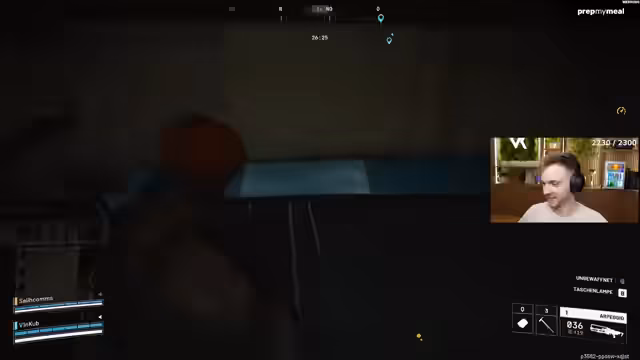 03:55:41Der Streamer ist im Finale eines Raids und befindet sich in einer hektischen Schusswechsel-Situation. Er versucht, zu crossen, um einen besseren Winkel zu bekommen, wird aber von Gegnern aufgehalten. Er entscheidet sich, die Gegner anzugreifen, die hinter einer Barrikade sind. Ein Gegner, den er sieht, hält sich komplett versteckt. Er versucht, den Gegner mit einem "Snap-Bock" zu eliminieren und fordert seinen Teamkameraden auf, Barrikaden zu errichten, um die Position zu sichern. Der Kampf ist unentschieden und es ist offen, wer die Oberhand behalten wird.
