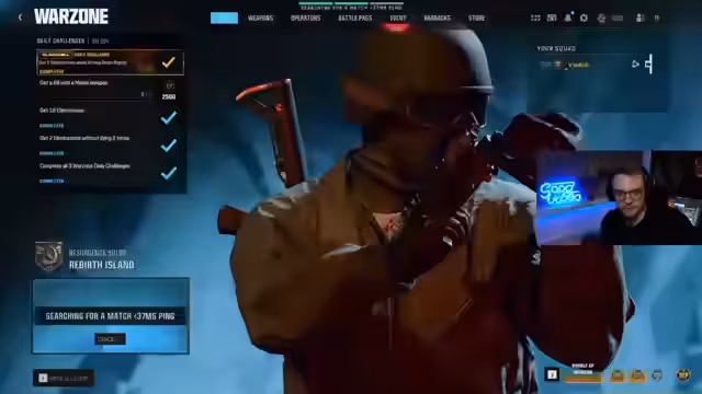 00:02:02Der Stream beginnt mit technischen Schwierigkeiten, da das Spiel des Streamers nicht startet. Nach einem Neustart des PCs ist das Problem behoben. Der Streamer begrüßt sein Publikum und stellt den heutigen Hauptinhalt vor: das Spielen von „Müllwaffen“. Er ruft die Zuschauer auf, über den Discord-Kanal ihre schlechtesten Waffen-Setups einzusenden, um damit im Spiel zu versuchen, Siege zu holen, idealerweise auf Rebirth Island.