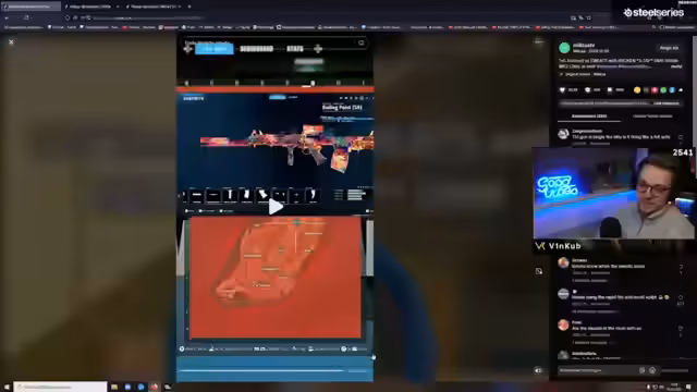 01:37:36Anfangs wird das goblin Loadout auf seine Tauglichkeit geprüft. Es wird als nicht schlecht eingestuft, aber die Kombination mit Rapid Fire wird kritisiert, da sie zu hohem Rückstoß und geringerem Schaden führt. Der Streamer kämpft mit der Waffe und findet es unchillig, besonders auf dem Hausen Keyboard. Trotzdem wird sie gespielt, da sie von einem Mitspieler vorgeschlagen wurde. In einem darauffolgenden Gunfight zeigt sich die Waffe als relativ effektiv, erfordert aber präzise Treffer.