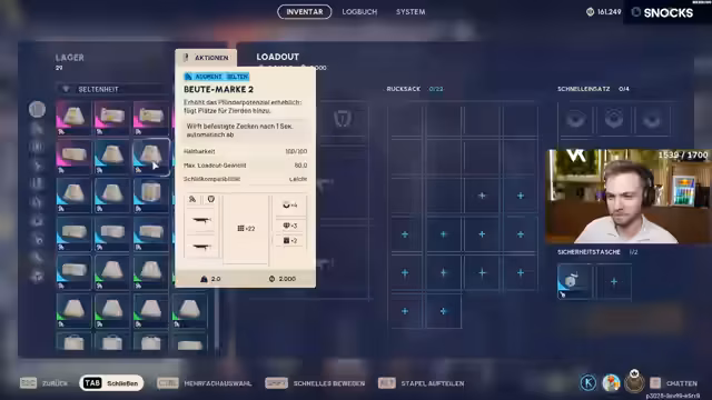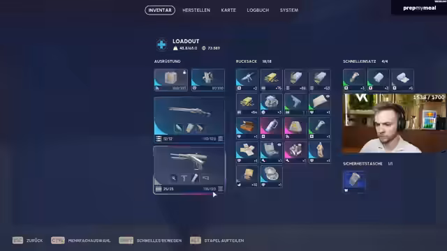 03:16:33Ein dramatischer Ausrüstungsverlust führt dazu, dass der Streamer seine gesamte Ausrüstung verloren hat und nur noch mit einem Gratis-Loadout spielen kann. Er kommentiert trocken, dass für ihn 'Schicht im Schacht' sei und das Spiel für ihn zu Ende ist. Gleichzeitig wird über die Nominierung von Arc Raiders als 'Game of the Year' gesprochen und ob es erneut nominiert werden kann. Anschließend wechselt das Thema zur Kameraausrüstung des Streamers, die er früher als Videograf nutzte.