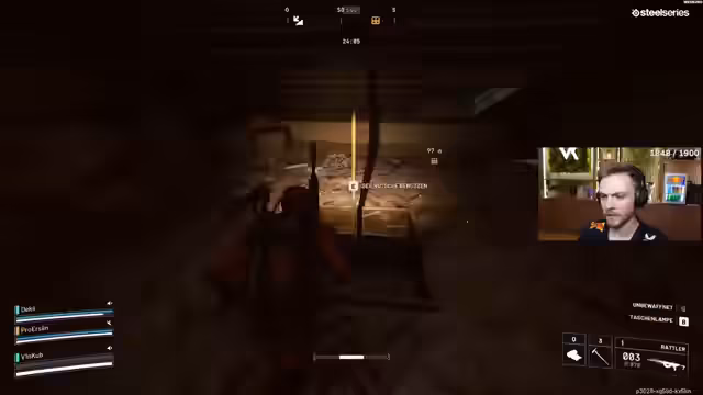 03:20:43Ein Spieler wird erneut ausgeschaltet, was zu Frustration führt. Das Spiel wird als „tot“ bezeichnet, da es scheinbar unmöglich ist, erfolgreich zu sein. Ein Spieler beklagt sich über verbuggten Sound und unfaire Situationen. Ein Gegner wird gesichtet und ausgeschaltet, was kurzzeitig Erleichterung verschafft. Die Spieler werden jedoch von weiteren Gegnern überrascht, die von hinten und oben angreifen. Es wird festgestellt, dass die Gegner clever agieren und auf die Spieler warten. Trotz des erneuten Team-Wipes wird die Ausbeute der letzten Stunden als „krank“ bezeichnet, da viel Geld verdient wurde. Die Spieler überlegen, wie sie ihre Ausrüstung optimieren können, um in zukünftigen Runden erfolgreicher zu sein. Die Möglichkeit, mit Shotguns zu spielen, wird diskutiert, da dies von vielen Spielern praktiziert wird. Die Bedeutung von Schilden und Schildaufladern wird hervorgehoben.