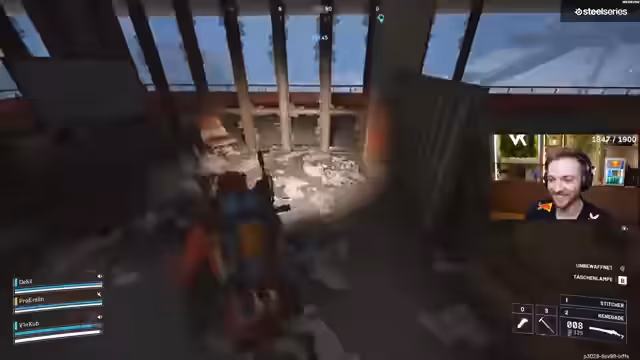 03:03:01Die Spieler bemerken, dass andere Teams kämpfen, und überlegen, sich einzumischen. Sie sehen Gegner direkt vor sich und entscheiden sich für einen schnellen Angriff. Ein Spieler schlägt vor, einfach von einer erhöhten Position herunterzuspringen, um schnell zum Kampfgeschehen zu gelangen, obwohl dies mit Schaden verbunden sein könnte. Es wird vermutet, dass die Gegner von einer Bastion stammen, die zuvor ausgeschaltet wurde. Während des Gefechts wird nach Aprikosen gesucht, die für Heilung oder andere Zwecke benötigt werden. Die Kommunikation über die Position der Gegner ist entscheidend, da diese sich sowohl unter als auch über den Spielern befinden könnten. Die Spieler versuchen, sich neu zu positionieren und die Gegner zu flankieren, wobei sie auf eine Zipline zurückgreifen, um schnell die Ebenen zu wechseln. Die Dunkelheit im Gebäude erschwert die Sicht und die Orientierung, was zu Verwirrung führt.