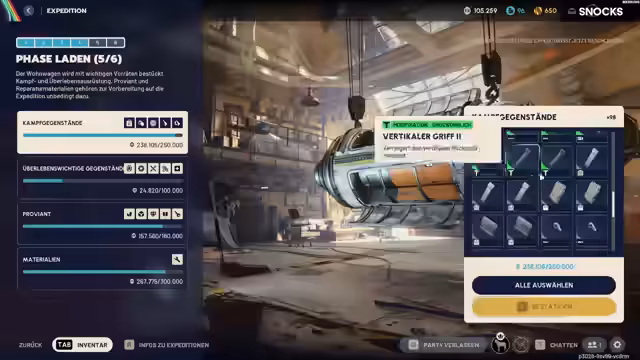 04:33:49Die Spieler stehen vor der Herausforderung, Batterien für ein Missionsziel zu finden, die an zufälligen Orten an Wänden spawnen. Ein Raum wird als 'verbuggt' beschrieben, da Batterien nicht entnommen werden können. Die Suche nach Bauplänen, wie dem für die Raider-Leuchtfackel, wird als glücksabhängig beschrieben. Die Bedeutung von Magneten und Gummiteilen für Waffen-Upgrades und Aufsätze wird hervorgehoben. Nach einem weiteren Kampf, bei dem ein Spieler stirbt, wird die Frustration über das Fehlen von Gegnern während der Runde und das plötzliche Auftauchen von zwei Gegnern hinter einer Tür geäußert. Trotz der Schwierigkeiten gelingt es den Spielern, eine große Menge an Loot zu sammeln, darunter mehrere Tempest-Waffen und Schilde, was jedoch zu Problemen mit dem Inventarplatz führt. Die Diskussion über die 'Stash-Value' und Skillpunkte für Expeditionen wird fortgesetzt, wobei Uneinigkeit über die genauen Mechanismen und die Relevanz des Grindens für fünf Skillpunkte besteht. Die Spieler bereiten sich auf die nächste Mission vor, bei der sie Proben öffnen müssen, was als 'Spaceport Electric Storm Event' bezeichnet wird.