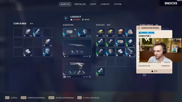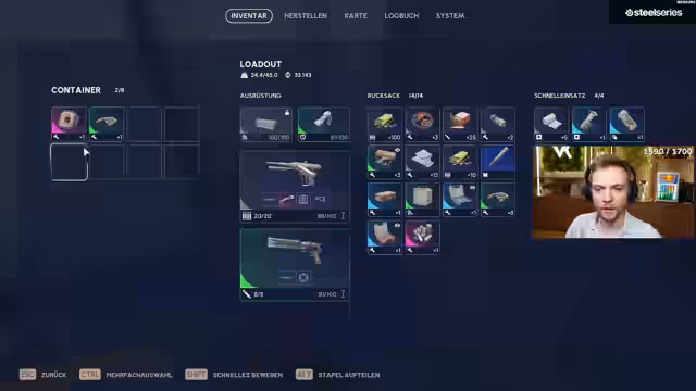 01:36:10Die Spieler diskutieren über die Einstellung des Fadenkreuzes im Spiel. Ein Spieler empfindet das standardmäßige T-Kreuz als ungünstig und bevorzugt ein normales Kreuz mit Mittelpunkt, um die Zielgenauigkeit zu verbessern. Der Inventarwert erreicht beeindruckende 80.000, was auf einen sehr erfolgreichen Run hindeutet. Die Spieler überlegen, welche Waffe sie in der nächsten Runde verwenden sollen und entscheiden sich, die 'Veneta'-Pistole auszuprobieren, die als sehr stark beschrieben wird, obwohl sie bereits generft wurde. Es wird Munition für die 'Veneta' vorbereitet und die Waffe verbessert. Die Spieler sind gespannt, ob die 'Veneta' die Erwartungen erfüllen kann. Es wird auch über das Leveln von Pistolen und die Recycling-Funktion von Gegenständen gesprochen, um benötigte Materialien zu erhalten.