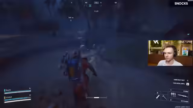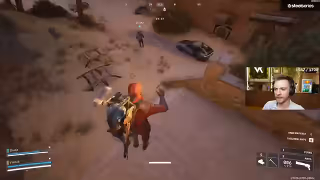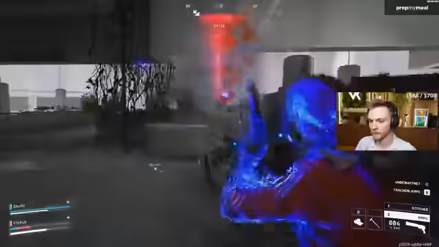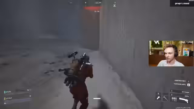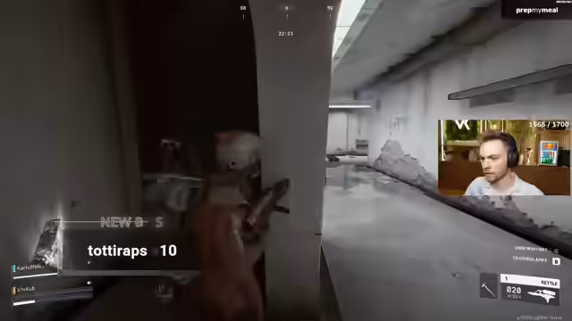 00:54:08Die Spieler befinden sich in einem intensiven Feuergefecht in einem Gebäude, wobei der Gegner den Highground hält. Nach mehreren Treffern auf einen Gegner, der ein Zweierschild zu haben scheint, entscheiden sich die Spieler für einen taktischen Rückzug. Sie versuchen, den Gegner zu flankieren oder sich in einen anderen Raum zu bewegen, um der ungünstigen Position zu entkommen. Trotz der Bemühungen, den Gegner zu umgehen, bleiben die Kontrahenten hartnäckig und verfolgen die Spieler. Ein Spieler wird als 'One-Shot' beschrieben, was die Dringlichkeit der Situation unterstreicht. Die Gegner ziehen sich schließlich zurück, nachdem sie einen anderen Spieler gelootet haben, was den Streamern eine kurze Atempause verschafft, aber auch Frustration über die verpasste Gelegenheit, die Gegner endgültig auszuschalten, hinterlässt.