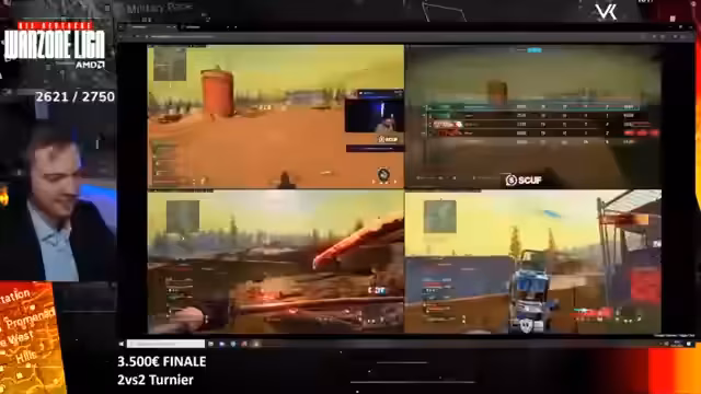 01:09:47Das Turnier beginnt planmäßig um 14 Uhr. Es handelt sich um ein 2 gegen 2 Kill Race Turnier mit 3.500 Euro Preisgeld. Der Streamer spielt mit einem Teammate, das heute finale Tage der Deutschen Warzone Liga. Das Format wird als einzigartig in Deutschland angesehen. Während des Turniers kommt es zu technischen Problemen und Disconnects bei Gegnern. Das Preisgeld wird wie folgt verteilt: Erstplatzierter 2.000 Euro, Zweiter 1.000 Euro und Dritter 500 Euro. Der Streamer erwähnt auch, dass solche Turniere organisatorisch sehr anstrengend sind, da oft kurzfristige Absagen von Teilnehmern erfolgen.