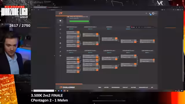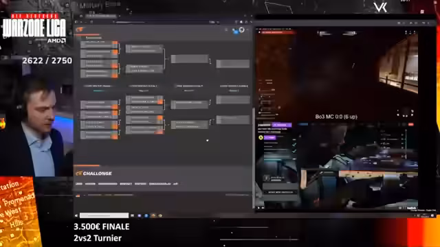 00:02:29Der Stream beginnt mit Begrüßungen an den Chat und die Zuschauer. Host v1nkub informiert über den heutigen Ablauf: Ab 14 Uhr startet das Finale der Deutschen Warzone Liga, ein 2 gegen 2 Kill Race Turnier mit einem Preisgeld von 3.500 Euro. Es wird ein Winner-Bracket-System geben. Teams, die in der Liga besser abgeschnitten haben, haben einen Vorteil, da sie gegen schwächere Gegner spielen. Die Top 8 Teams starten im Winner Bracket, während die Platzierungen 9-16 direkt im Loser Bracket starten. Die Auslosungen erfolgen nach einem ähnlichen Prinzip wie in der Champions League.
