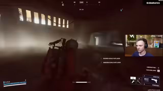05:11:20Nachdem die technischen Probleme gelöst sind, startet der Stream in Battlefield 6. Er ist begeistert von der Grafik, obwohl er keine maximalen Einstellungen verwendet, und beschreibt das Flair der neuen Map im Bayerischen Wald. Er spielt als Versorger mit einer Waffe, die er aus Red Dead Redemption 2 kennt, und nutzt neuartige Gadgets wie Psychogas. Er erlebt das Zerstörungspotential des Spiels und ist in die neuen Mechaniken wie das Halluzinieren durch Gas eingetaucht.