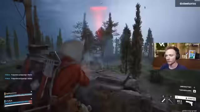 00:23:09Nachdem der Glitch-Test gescheitert ist, beginnt der Streamer mit PvP-Aktivitäten. Er wechselt in die Nordamerika-Server, da er hier ein faires und weniger verkrampftes Spielerlebnis als auf den EU-Servern feststellt. In einem Spiel gerät er in eine spannungsgeladene Situation, nachdem er einen Spieler eliminiert hat und dieser von einem anderen gelootet wird. Der Streamer diskutiert die Spieler-Etikette, die Situation löst sich schließlich friedlich auf, was er als fair bezeichnet.