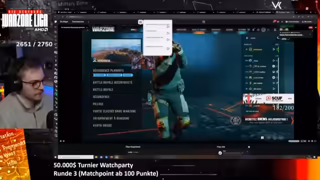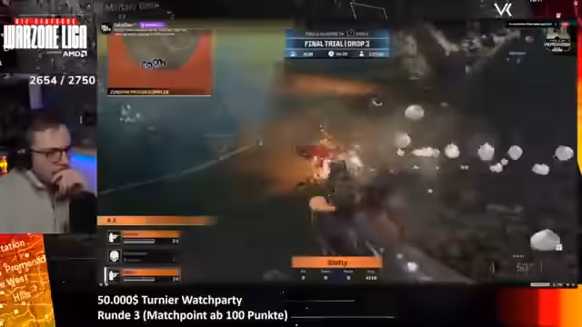 03:09:24Während des Streams wird live ein Warzone-Spiel gezeigt. Der Streamer erleidet einen unglücklichen Tod in einem Duell und gibt zu, dass er den Gegner leicht verfehlt hat. Die technischen Voraussetzungen werden diskutiert. Da das Turnier im Ranglistenmodus gespielt wird, gibt es bessere Ground-Loots und drei Platten im Gulag. Ein Bug zwingt die Entwickler dazu, die Lobby neu zu starten, was zu Verzögerungen führt und den Streamer frustriert. Zudem wird die Dominanz von Maus-Keyboard-Spielern im Turnierkontext thematisiert und als unfair angesehen.