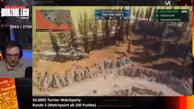 04:17:49Die Runde beginnt und die erste Phase ist geprägt von ruhigen Landemanövern und frühem Grinding. Die Custom-Lobby sorgt für ein anderes Spielgefühl. Es werden die ersten Eliminierungen gemeldet, darunter ein unglücklicher Tod von FIFA Kill im Gulag. Der Streamer kommentiert verschiedene Moves der Teams, insbesondere von Dickie, der jetzt aktiv auf Gegner pusht. Er stellt fest, dass nur das Team von Can bewusst einen Delay verwendet, während die anderen ohne spielen. Es wird auch die Abwesenheit von Teammitgliedern wie Kayser thematisiert, der wegen Flug und Terminen nicht teilnehmen kann.