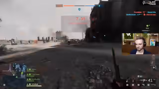 03:41:29Streamers Waffe wechselt ungewollt, was ihn frustriert. Er kritisiert die schlechte Performance seiner aktuellen Waffe (RPK) und trifft kaum Ziele. Er fühlt sich wie ein Teil des Problems, als er selbst beginnt, Taktiken zu nutzen, die er bei anderen Spielern als nervig empfindet, wie z.B. das 'Ziehen' gegen die Wand. Er beschreibt das gesamte Geschehen als 'Wahnsinn' und 'kacke'.