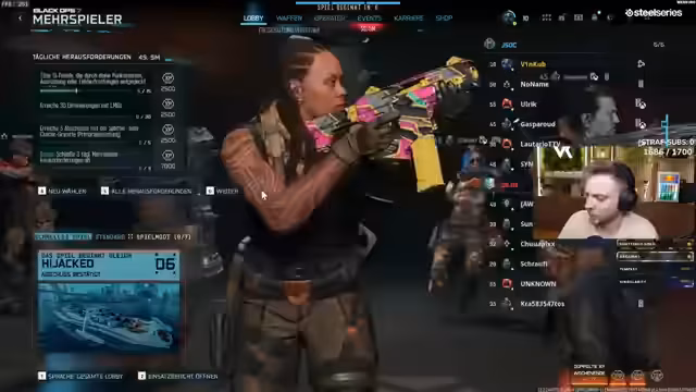 02:25:09Der Streamer äußert seine Frustration über die Lobbys und die Behauptung von Zuschauern, er würde VPN nutzen, was er als absurd empfindet. Er kämpft weiterhin mit den fünf Kills ohne zu sterben und wird in den Lobbys 'durchgereicht'. Er beschreibt die Lobbys als unspielbar und schlimmer als je zuvor. Er überlegt, ob er Hardcore-Modus für Shotguns nutzen soll, empfindet aber auch diesen als schlecht. Er hat Schwierigkeiten, Lobbys zu finden, und überlegt, ein Visier auf die Shotgun zu setzen oder stattdessen LMGs zu machen. Er bestätigt, dass er die zweite Pistole fertig hat und die Lobbys extrem schwierig sind. Er hofft, dass die Lobbys morgen besser sein werden. Er plant ein ausführliches Camo-Video, das Taktiken, Modi und Maps für das Freischalten von Tarnungen behandelt. Er erwähnt ein Event in Nürnberg namens 'Nürnberg feiert' und vergleicht es mit der Steintribüne, einem historischen Ort in Österreich.