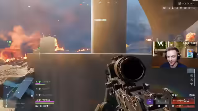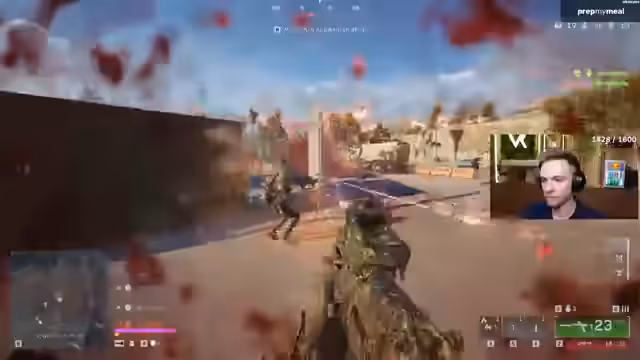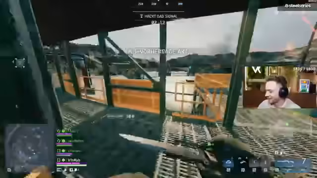 01:22:57Es wird eine Serie hektischer Kämpfe und Feuergefechte geschildert. Ein Streamer ist in ein Gefecht mit mindestens zwei feindlichen Teams verwickelt, die sich in der Nähe seines Spawners befinden. Es kommt zu mehreren K.o.-Schlägen und einem Wipe, bei dem das gegnerische Team komplett ausgeschaltet wird. Besondere Aufmerksamkeit gilt den Gegnern mit 'Geek-Namen', welche auf COD-Spieler hindeuten. Die taktische Lage ist angespannt, da sich der Streamer zwischen drei Teams befindet und die Lobby als sehr schwierig beschrieben wird.