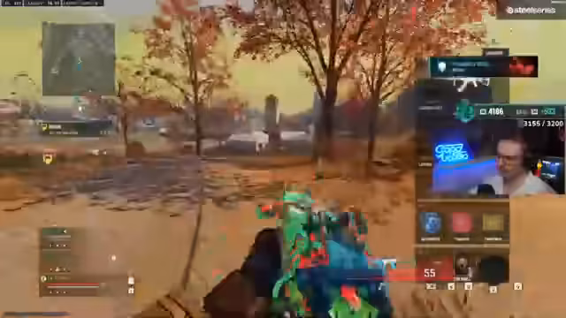 00:05:46Bevor das eigentliche Spiel startet, muss der Streamer sein Spiel auf Englisch umstellen, da es versehentlich auf Deutsch lief. Der erste gespielte Modus ist „High Trip Resurgence“, ein experimenteller Modus auf Verdansk, der durch farbenfrohe Grafik, erhöhten Sprungradius, erhöhten Schaden und schnellere Nachladezeiten geprägt ist. Der Streamer ist von den visuellen Effekten und der unübersichtlichen Gestaltung des Modus überfordert und kritisiert ihn stark, findet aber die Spielmechanik für Waffentests und schnelle Kills nützlich.
