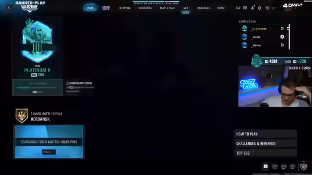 01:03:20Der Streamer beendet die Waffentests und wechselt in den Ranked-Modus. Aktuell befindet er sich auf Platz Platin 1 mit etwa 3600 SR. Sein Ziel ist es, in die Top 250 aufzusteigen, weshalb er für die nächsten Tage vorwiegend Ranked-Spiele plant. Neben den Ranked-Spielen hat er noch YouTube-Inhalte zu produzieren. Er erwähnt auch Pläne für einen gemeinsamen Stream am nächsten Tag mit Inscope um 18 Uhr.
