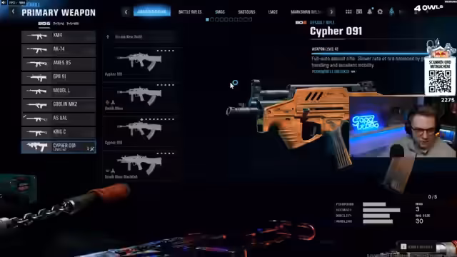 04:08:45Der Fokus lag auf dem Fortschritt der Katalysator-Tarnung in Warzone. Der Streamer ist bei 26 von 33 benötigten Waffen und beschrieb den Prozess als sehr aufwendig. Insbesondere die Shockstab-Kills erfordern eine spezielle Vorgehensweise: zuerst ein Ziel mit dem Shockstab treffen und töten, anschließend den Gegner mit der eigentlichen Waffe regulär eliminieren. Er plant, dies hauptsächlich mit Meta-Waffen zu erledigen, um den Aufwand zu minimieren.