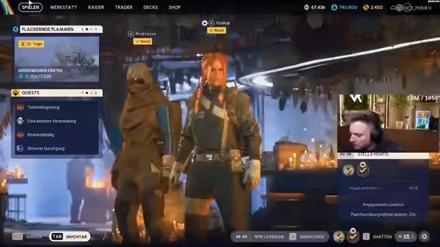 04:40:56Der Streamer erfüllt Missionen wie das Töten eines Gegners mit einem Feuerballbrenner und das Vernichten von Hornissen mit Abzuggranaten. Erfolgreiche Runden führen zu wertvollem Loot, darunter Baupläne und Munition. Die Gruppe plant strategisch, um Quests effizient abzuschließen, und feiert den Erhalt seltener Gegenstände. Diskussionen drehen sich um die Herausforderung, bestimmte Gegner mit speziellen Waffen zu eliminieren, und wie man dabei Loot optimal nutzt. Der Streamer betont die Zufriedenheit über den Fortschritt und die Zusammenarbeit im Team.