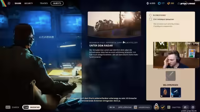 06:01:00Die Streamer arbeiten an verschiedenen Quests, wie dem Besuchen von Felddepots und der Lieferung von Feldkisten. Sie verbessern ihre Werkstatt auf Level 3, um Zugang zu bauen und besser auszurüsten. Der Streamer stellt fest, dass er wichtige Teile automatisch mitnimmt und Energiezellen für Verbände benötigt. Sie überlegen, ob sie bestimmte Baupläne wie den Karabinerhaken verkaufen oder behalten sollen und diskutieren über die Notwendigkeit, Diamanten zu finden und zu verkaufen, um weiteres Geld für Upgrades zu erhalten.