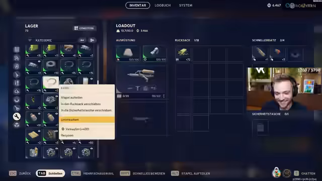 06:14:49Ein zentrales Thema des Streams ist das Management des Inventars. Der Streamer stößt ständig auf Platzmangel und muss entscheiden, welche Gegenstände verkauft oder recycelt werden sollen. Der Chat gibt Tipps zur Organisation, aber der Streamer ist oft überfordert. Besonders wertvolle Gegenstände wie Rattler-Waffen und Anvils werden diskutiert, ob sie behalten oder verkauft werden sollen. Dies führt zu strategischen Überlegungen und frustration über die begrenzte Lagerkapazität.