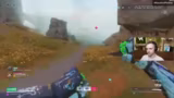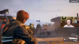 00:49:11Das Duo gerät in eine weitere Konfrontation, diesmal mit einem feindlichen Rocketeer. Der Rocketeer wird als eine große Bedrohung eingestuft und aktiv beschossen. Ein Versuch, ihn mit einer Axt zu schwächen, schlägt fehl. Nachdem der Rocketeer den Streamer eliminiert hat, diskutieren sie über die Taktik und überlegen, wie sie solche Gegner zukünftig effektiver bekämpfen können. Auch die Gefahr feindlicher Drohnen, die strategische Schaltkreise fallen lassen, wird thematisiert.