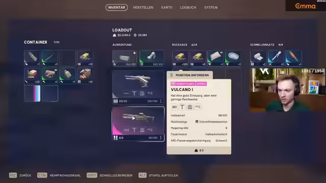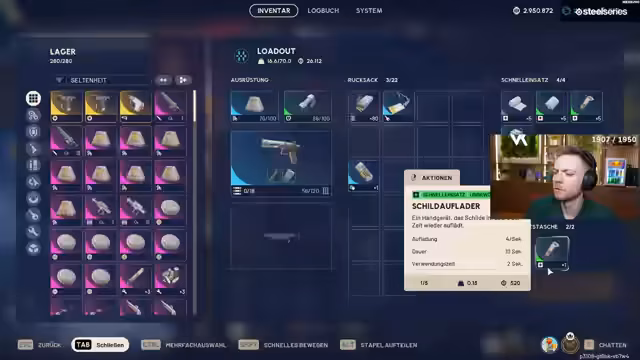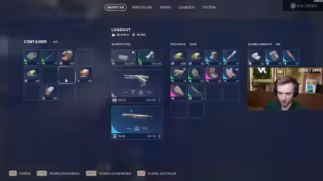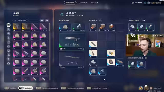 04:14:28Der Fokus liegt auf der Vorbereitung des Inventars für die kommende Runde. Es werden Überlegungen zur Mitnahme von Waffen mit geringer Haltbarkeit angestellt, wobei man sich darauf verlässt, dass Waffen bei normalem Gebrauch nicht so schnell kaputt gehen. Der Streamer zeigt sein volles Inventar mit verschiedenen Waffen und Upgrades, darunter Venator, Kettl und Anvil. Er diskutiert den Wert von Bauplänen und ob es sinnvoll ist, diese zu teilen oder zu verkaufen, und erwähnt Vertrauensprobleme bei Waffentransfers.
