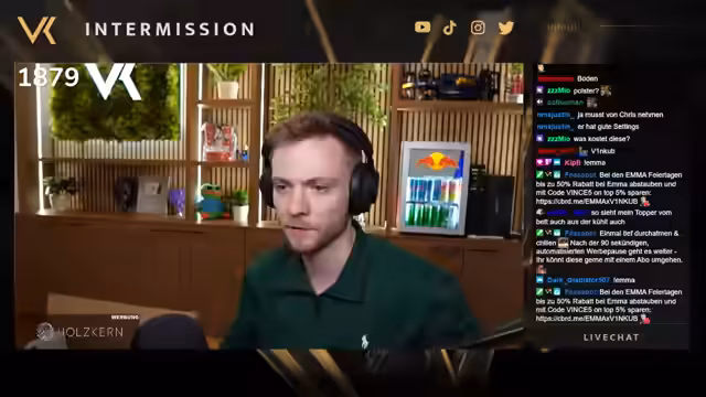 05:46:41Der Streamer präsentiert ein Paket von Emma Matratzen mit Kühlkissen und Decken. Er lobt das Kissen für seine Wabenstruktur, die für Kühlung sorgt, und die anpassbare Dicke. Mit dem Code 'Vince5' bietet er 5% Rabatt auf bereits reduzierte Preise an und betont die 10-jährige Garantie sowie 100-tägige Testphase. Die Produkte werden als besonders für Weihnachtsgeschenke empfohlen.