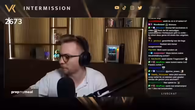 00:01:58Der Stream startet mit kleineren technischen Unannehmlichkeiten, als der Streamer versehentlich aus der Musiksteuerung klickt. Nach den üblichen Begrüßungen im Chat wird der neue Hintergrund als Rohzustand beschrieben, der zwar bereits brachial wirkt, aber noch viele Details vermissen lässt. Der Streamer erwähnt, dass er heute eine Stunde später startete, da er sich zuvor einen Formel-1-Stream angeschaut hat und begeistert vom Spiel ist. Auch gest Abend wurde mit Freunden gespielt, und man freut sich auf den Karrieremodus. Für den Tag sind Warzone und ein anschließender Umstieg in Formel 1 geplant.