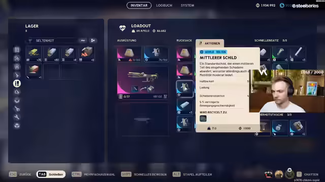 01:21:54Der Streamer diskutiert über den Verkauf und das Recycling von Waffen basierend auf deren Haltbarkeit. Waffen mit geringer Haltbarkeit werden recycelt, während solche mit guter Haltbarkeit verkauft werden, um mehr Credits zu erzielen. Die Bobcat wird als besonders schmerzhaft zu verkaufen beschrieben, da sie eine hohe Haltbarkeit hat. Es wird auch die hohe Credits-Summe von über 100.000 erwähnt, die für eine Ausrüstung zusammenkommt.