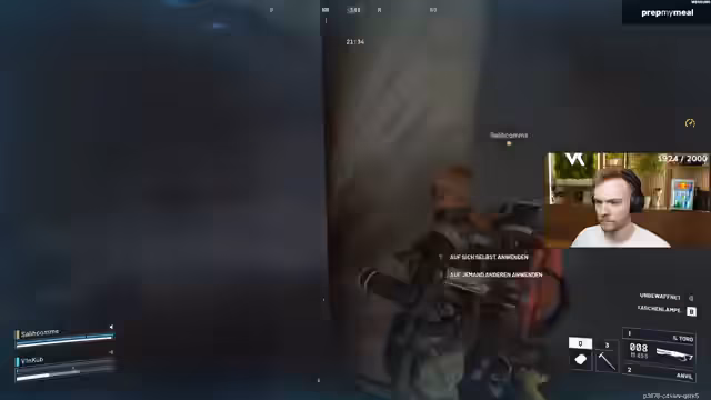03:13:14Die Stimmung kippt in Richtung Pech. Der Streamer möchte einen 'One shot' landen, doch ein Teamkollege schießt ihn unbeabsichtigt. Anstatt traurig zu sein, reagiert er mit einem selbstironischen, wütenden Scherz: 'Ich hab grad mit dem Gedanken gespielt, soll ich schnell stehen bleiben und Controlplay ausmachen?' und bezeichnet die Aktion seines Teamkollegen als 'asozial'.