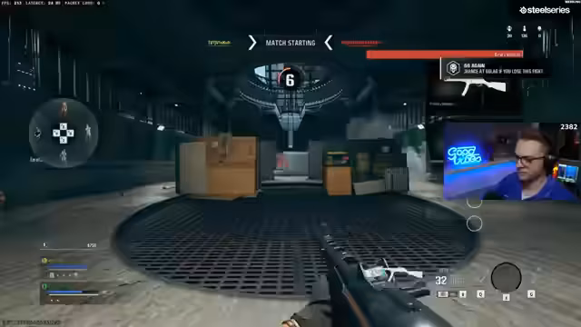 07:08:13Das Custom Game mit MW2-Waffen beginnt, wobei klargestellt wird, dass nur Waffen aus Warzone 2 erlaubt sind, wie beispielsweise Well, PDSW und ISO-Hemlock. Der Crossbow ist aufgrund seiner Stärke verboten, und Umbau-Kids sind ebenfalls nicht gestattet. Bis zum Erreichen des Loadouts dürfen die Spieler nur Pistolen benutzen. Der Streamer wundert sich, woher ein Spieler bereits ein Loadout hat, stellt aber fest, dass es sich um eine Killstreak-Kiste handelt. Er lobt die Vielfalt der Waffen, die die Spieler verwenden, im Gegensatz zur vorherigen Runde mit MW3-Waffen, in der fast alle Superi und Kar98 spielten. Es wird festgestellt, dass die Well auf kurze Distanz beliebt ist. Der Streamer kommentiert die Grafikkarte eines Zuschauers und beobachtet das Spielgeschehen, wobei er verschiedene Waffenkonfigurationen und Spielstile der Teilnehmer hervorhebt. Er bemerkt, dass einige Spieler Pistolen effektiver einsetzen als andere ihre eigentlichen Waffen, und lobt die Ausgeglichenheit der Waffenvielfalt in dieser Runde.
