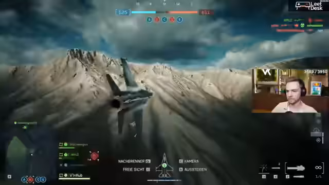 03:16:01Nach der Vorstellung des Tisches konzentriert sich der Streamer intensiv auf das Fliegen und Kämpfen mit Jets in Battlefield. Er spielt auf dem höhenverstellbaren Tisch im Stehen und kommentiert seine Aktionen sowie die Performance im Spiel. Er vergleicht die Gameplays von Battlefield und Black Ops, wobei er Battlefield für Maus- und-Tastatur-Spieler und Black Ops für Controller-Spieler bevorzugt. Er erwähnt wiederkehrende technische Probleme, wie den manchmal nicht funktionierenden Sound zum Spawnen von Jets, was das Spielen unmöglich macht.