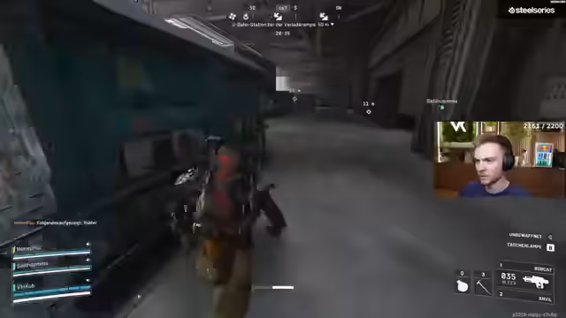 05:32:19Der Streamer fühlt sich von einem Team mit Freeloader in-game geködert und eliminiert. Er überlegt, eine andere Map zu spielen. Er und seine Mitspieler haben alle Waffen dabei, was als geiler Zustand beschrieben wird. Ein Team wird von einem Gegner gekillt. Es gibt ein offenes Exfil mit Zug und einem anderen Ausgang. Die Lobby wird als unruhig beschrieben.