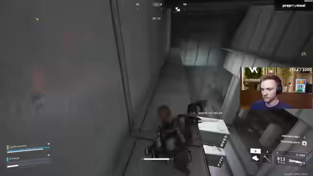 02:39:49Nach intensiven Nahkämpfen und einem "geisteskranke Nade" genannten Eliminierung, kommt es zu Verwirrung um Teammates. Der Streamer ist unsicher, ob er einen Gegner oder einen Kameraden getroffen hat, und ruft mehrfach nach Torben, um dessen Status zu klären. Nachdem Torbens Tod bestätigt ist, versucht der Streamer, die verbleibenden Teammates zu koordinieren, während die Gegner weiter vordringen und das Team unter Druck setzt.