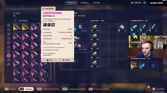 01:19:48Die Aufmerksamkeit richtet sich auf eine neu gefundene Waffe, eine Sniper mit mittlerer Munition. Der Streamer analysiert die Waffe detailliert und hebt hervor, dass diese strategisch bewusst ausgeglichen ist. Ihr Schaden ist nicht hoch genug, um Gegner in zwei Schüssen zu eliminieren, was verlangt, dass der Spieler präzise mehrere Treffer landen muss. Dies verhindert eine Overpowered-Status. Er diskutiert den Vergleich zu anderen Waffen und kommt zu dem Schluss, dass die Sniper für eine reine Distanzstrategie durchaus potent ist, jedoch nicht zum Pushen im Nahkampf geeignet ist.
