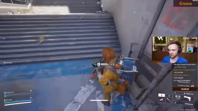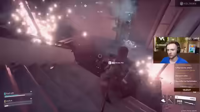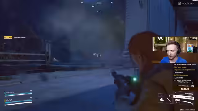 01:48:20Nachdem die Lobby zusammengestellt ist, startet die Queen-Challenge mit intensiven Gefechten. Das Team steht unter Feuer von mehreren gegnerischen Gruppen, während es gleichzeitig die Queen bekämpft. Koordinierte Angriffe mit Wolfsrudel-Granaten werden durchgeführt, doch unerwartete Snip-Angriffe und versteckte Gegner erschweren den Fortschritt. Das Team verliert mehrfach Teammitglieder, muss reviven und strategisch neue Positionen suchen, um nicht umzingelt zu werden. Trotz hoher Munitions- und Heilmitteleinsatz bleibt die Queen kurz vor der Niederlage.