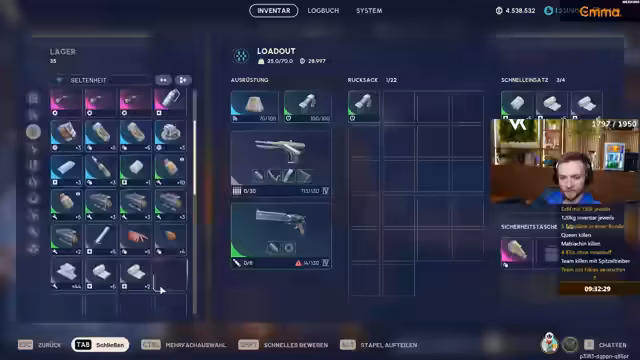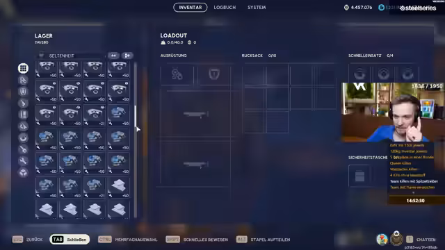 07:14:01Der Streamer beginnt mit dem massenhaften Recyclen seines Inventars, das über 224 Items umfasst. Während des Prozesses wird der drastische Wertverlust deutlich: Aus anfänglichen 1,3 Millionen Einheiten werden nach erstem Recycling nur noch 800.000, nach weiteren Schritten lediglich 300.000 Einheiten übrig. Die Notwendigkeit des Recyclens wird begründet, um Basis-Materialien wie Gummi und Metall zu gewinnen, allerdings führt dies zum Scheitern des Ziels, 5 Millionen Einheiten zu erreichen. Der Streamer drückt seine Frustration über den Verlust wertvoller Baupläne aus und reflektiert über die Konsequenzen für die Expedition.