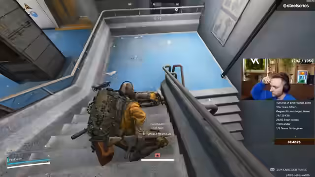 04:02:07Der Streamer fordert alle Teilnehmer auf, gelbe Standard-Skins zu verwenden, um ein einheitliches Erscheinungsbild zu gewährleisten. Es folgt eine Diskussion über die Raumstrategie, bei der die Wände symmetrisch aufgestellt werden sollen, um Durchgänge zu schaffen. Anschließend wird der Ozeanien-Server als beste Option für die Suche nach einer Lobby festgelegt, da dort weniger Spieler sind und die Chancen höher sind, gemeinsam in eine Runde zu kommen. Alle werden angewiesen, ihre Ausrüstung zu optimieren, darunter mindestens drei Defibrillatoren, zusätzliche Schilde und passende Waffen, um die Herausforderung erfolgreich zu bestreiten.