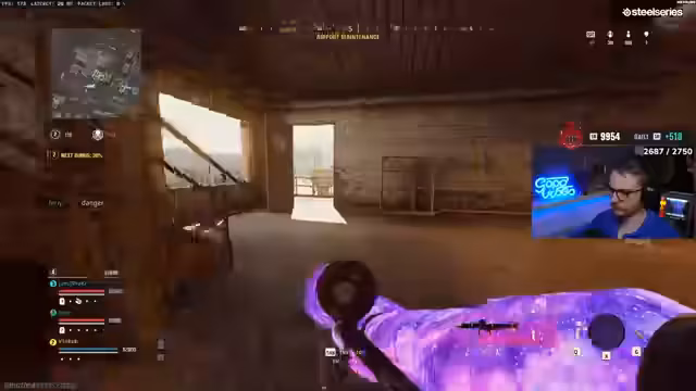 04:40:15Die Kampfverlagerung in ein Einkaufszentrum offenbart eine komplexe und gespielte Situation. Mehrere Gegner sind in verschiedenen Positionen in und um das Gebäude verteilt. Eine der Gegneraktionen scheint dem Streamer verdächtig vorprogrammiert zu sein, was zu der These führt, dass die Gegner möglicherweise eine unfaire Spielweise anwenden. Eine weitere Beobachtung ist der Tod eines Teammitglieds, das von links aus dem Nichts angegriffen wird.