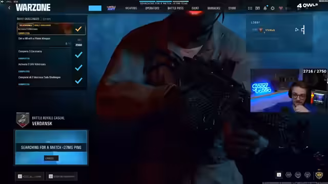 04:19:25Der Streamer testet die aktualisierte Cipher-Waffe, die er nach einem Buff für sehr stark hält. Er spielt mit ihr anstatt seines Standardarsenals. Gleichzeitig bemerkt er hohe Pings in der Lobby und vermutet DDoS-Angriffe, die anscheinend deaktiviert wurden, da es keine Lobby findet. Er diskutiert die Performance der Waffe im Vergleich zu anderen Optionen.