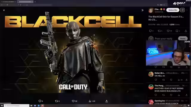 05:59:45Streamer diskutiert über neue Skins und Bundles in Season 3, insbesondere den Black Cell Battle Pass Rose-Skin, der kontroverse Diskussionen auslöst. Es werden verschiedene Design-Optionen vorgestellt und bewertet. Streamer zeigt Begeisterung für die neue Rose-Skin-Variante mit goldenen Akzenten und diskutiert deren Sichtbarkeit im Spiel.